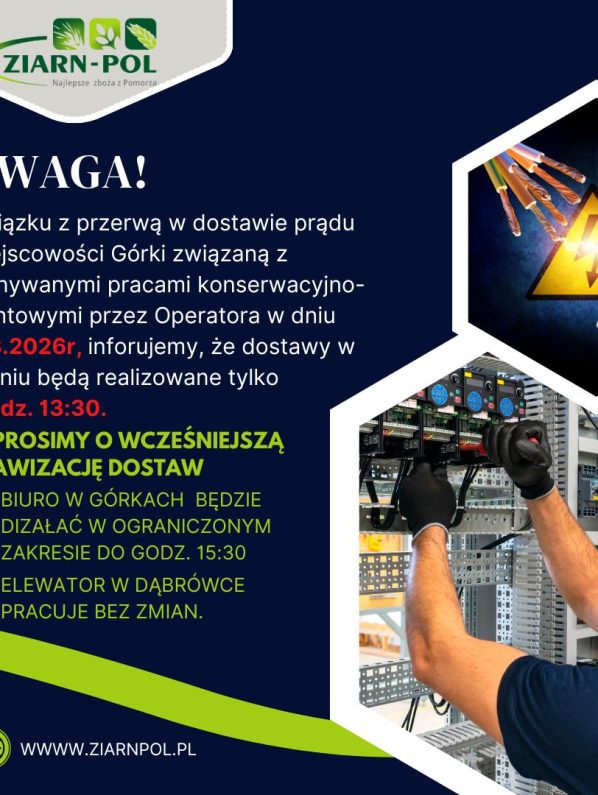 ZIARN-POL świadczy usługi przechowalnicze i przeładunkowe, a także suszenia zbóż. Dysponujemy...Skup i sprzedaż płodów rolnych